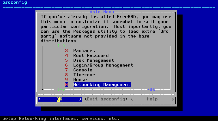 「vi」が苦手だという人は、「bsdconfig」というコマンドを使うと便利です。