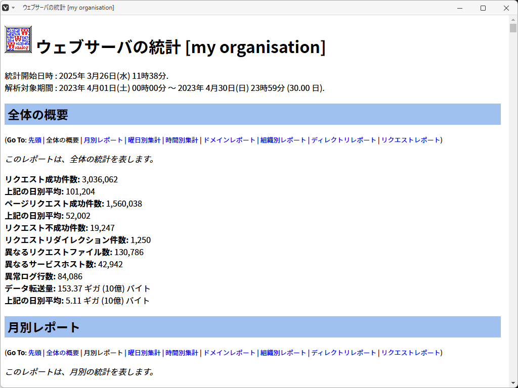 わたしとしては今後は、「webalizer」か「awstats」を使用することをお勧めしているのですが。