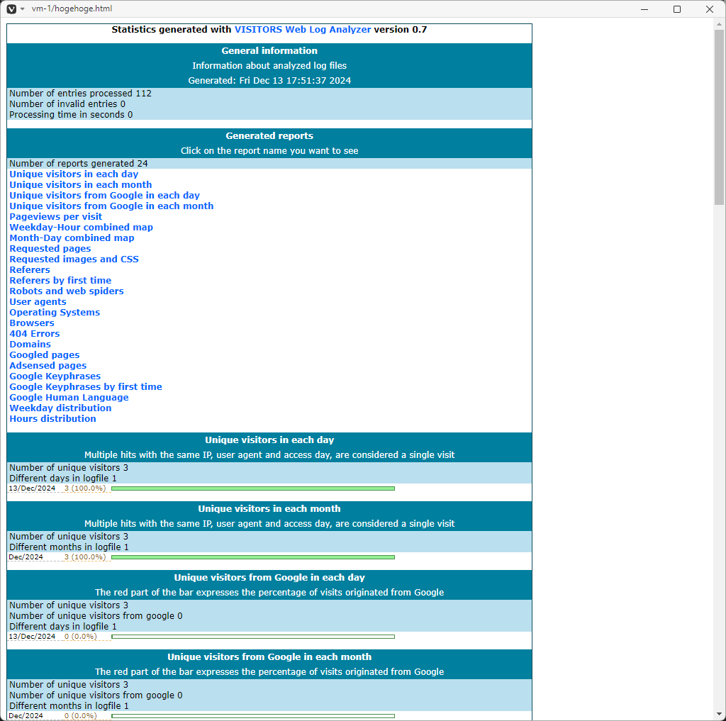 これで、「hogehoge.html」を参照すれば解析結果が見られます。