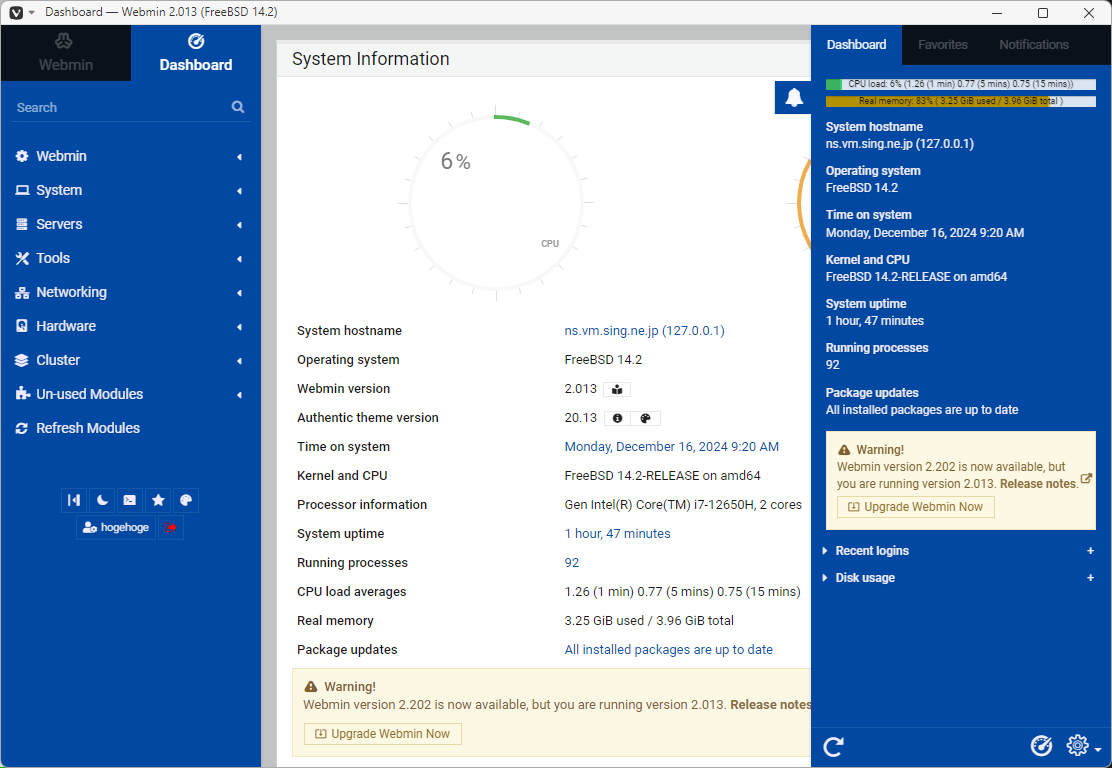 FreeBSD 14.2 RELEASE - Webmin - 初期設定