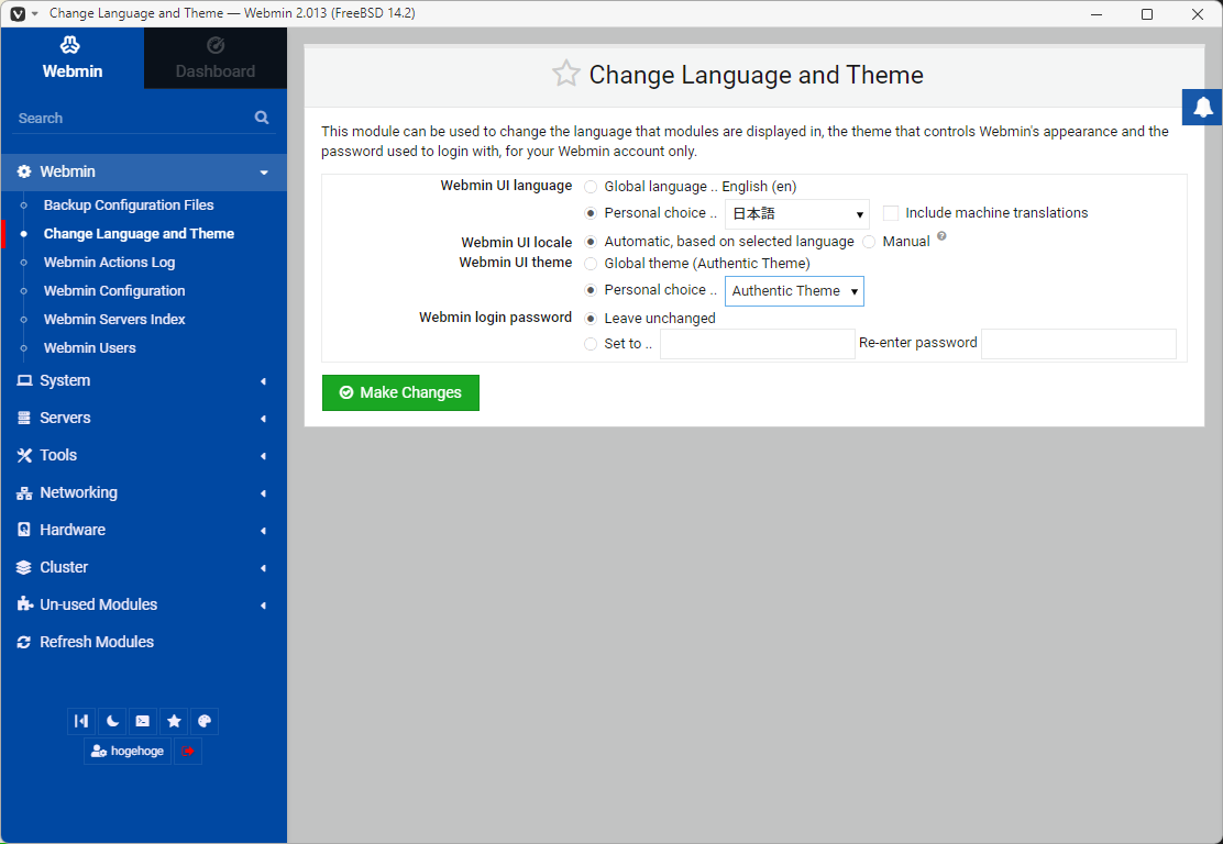 「Webmin」→「Change Language and Theme」