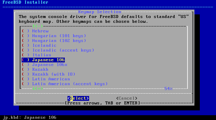 ↓ や PageDown で使用しているキーボードに合うものを選択して Space