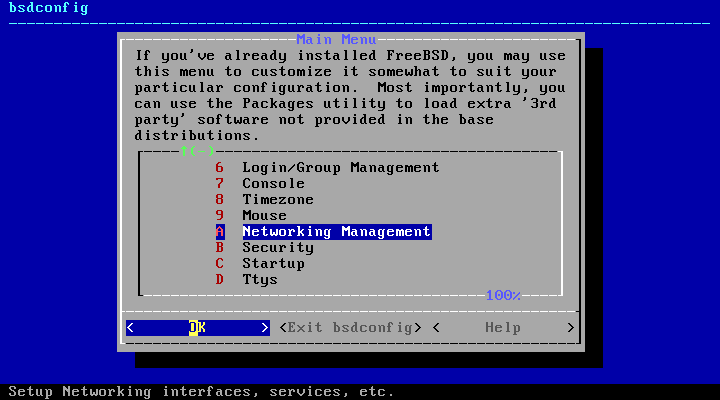 「vi」が苦手だという人は、「bsdconfig」というコマンドを使うと便利です。