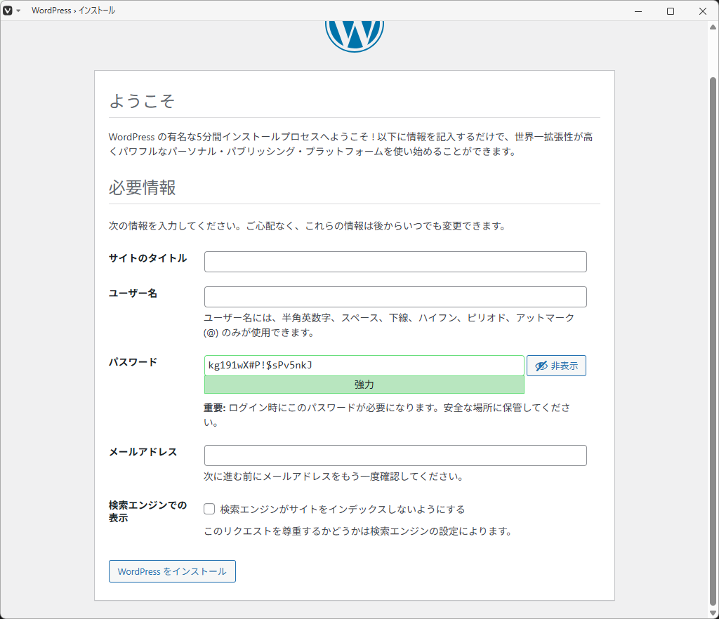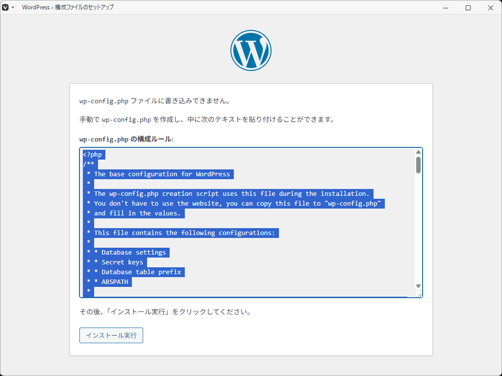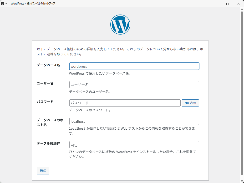 しかし、ここで特にカスタマイズすることもなければ、データベースを作成した状態で、ブログの「URL」にいきなりアクセスして、画面からの入力形式にした方が簡単です。