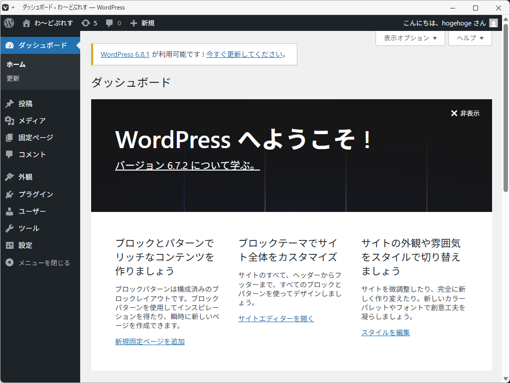 前項の最後のページで、「WordPress」の更新が発生しています。