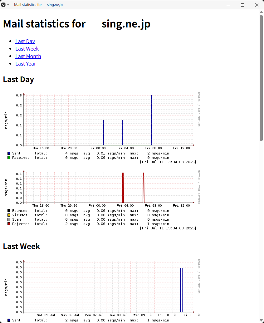 「ChatGPT」くん提案の「mailgraph」という、ウェブ形式で保存できるらしいツールを使ってみようと思います。