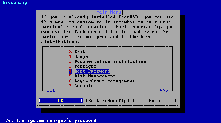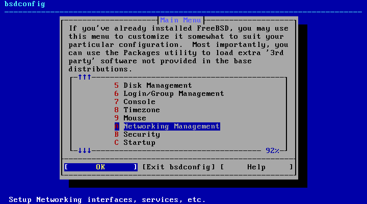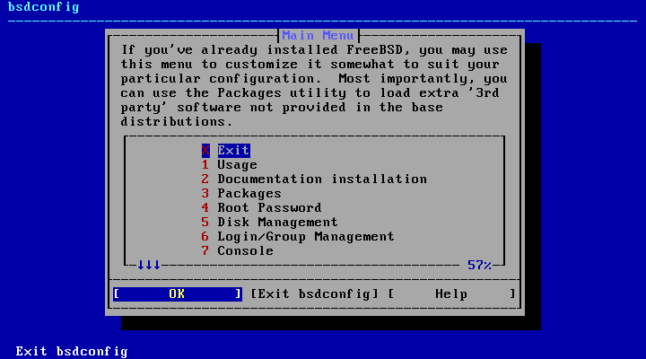 「vi」が苦手だという人は、「bsdconfig」というコマンドを使うと便利です。