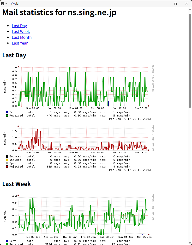 メールログ解析ツール「mailgraph」をインストールします。
