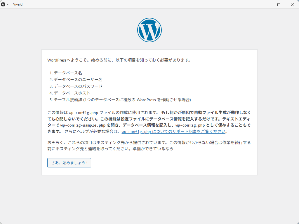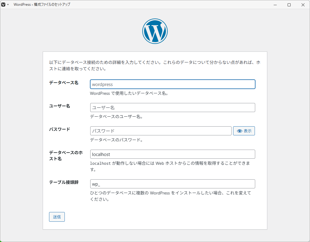 しかし、ここで特にカスタマイズすることもなければ、データベースを作成した状態で、ブログの「URL」にいきなりアクセスして、画面からの入力形式にした方が簡単です。