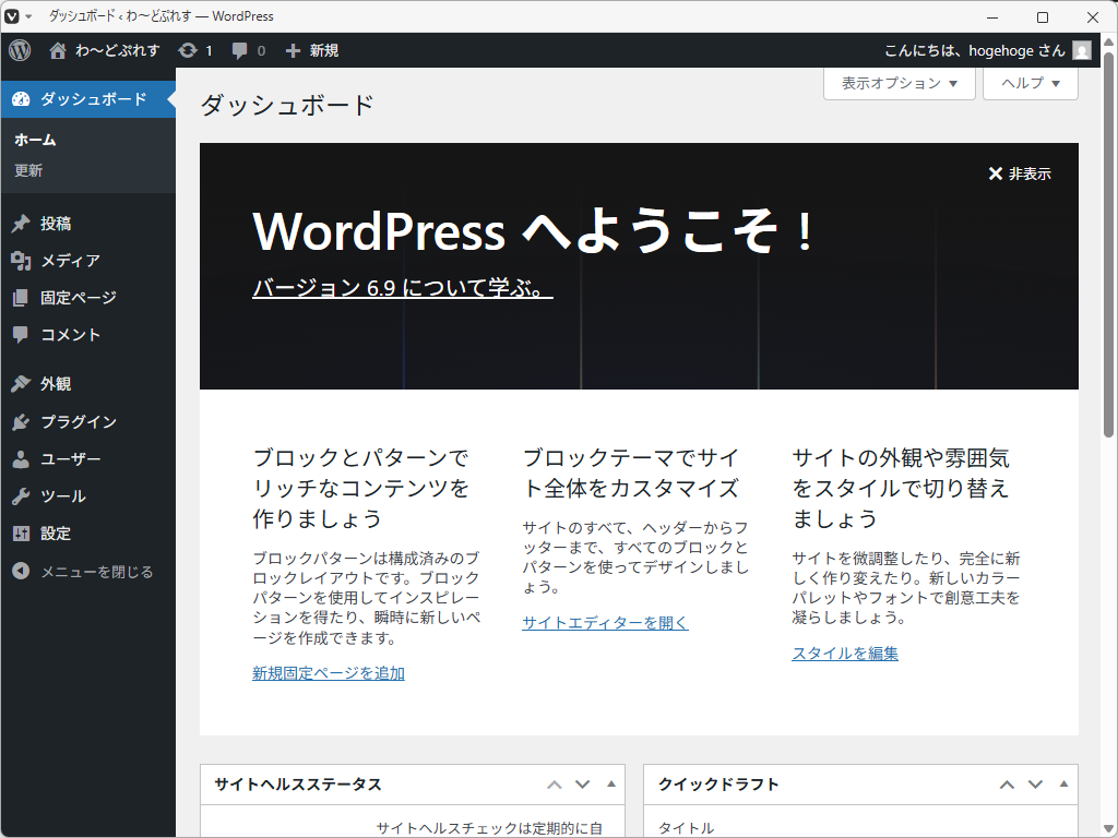 そうするとことで、更新は、「WordPress」自体で、行うことができるようになります。