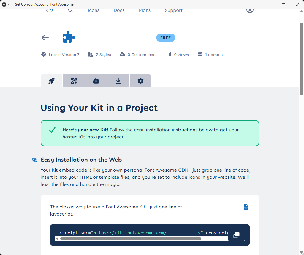 「Your Kits | Font Awesome」(配布サイト本家)によって。