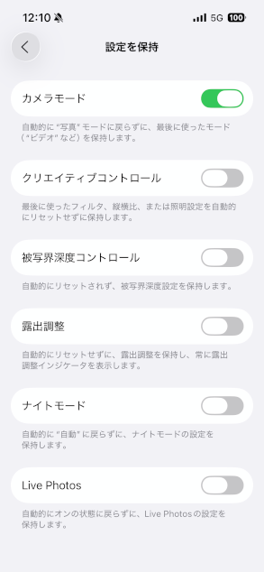 下の「Live Photos」というのをオンにしておくと、設定したものが保持されるようになります。