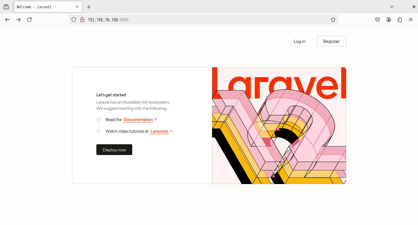 前ページまでの設定で、ウェブサーバから、「Laravel」のプロジェクトへアクセスできるようにしていればとりあえず表示までできます。