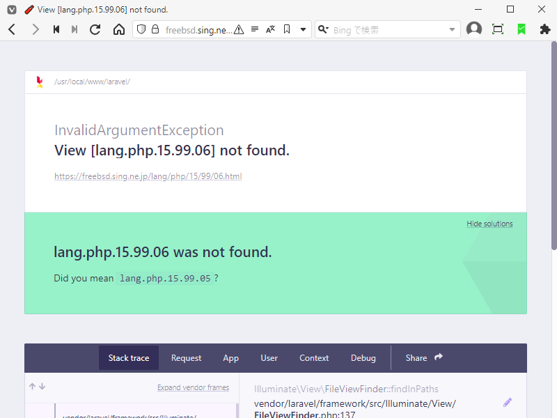 本サイトでは、「PHP - Laravel - エラー表示」を適用して、「404」「500」に関しては、エラー画面を表示しているのですが・・・。
