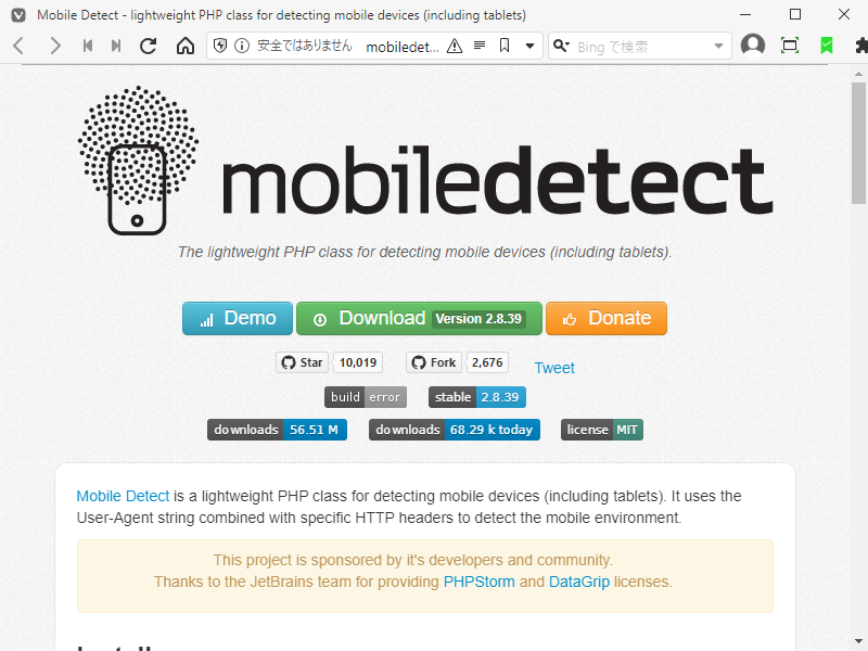 現在、わたしが持っている、「Mobile_Detect」のバージョンが、「2.8.39」で、そのリリース日が、2022年2月18日。