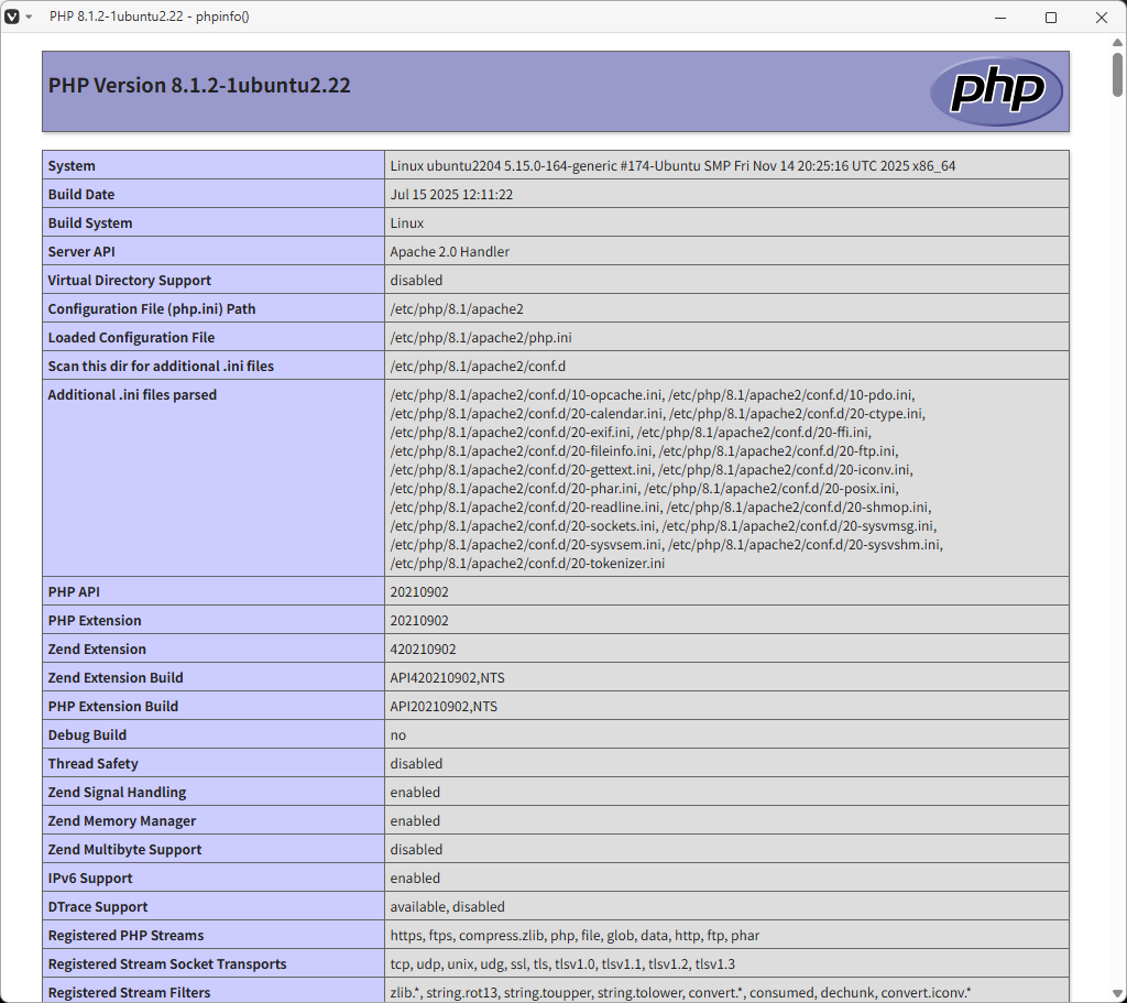 PHP version 8.1.2-1ubuntu2.22 (/usr/bin/php8.1)