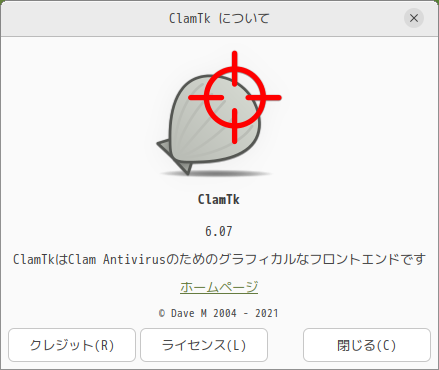 起動直後の状態です。 2024年10月15日の時点で、下記のバージョンでした。 操作方法については FreeBSD のものですが「FreeBSD - デスクトップ環境構築 - 共通事項 - ClamTk」をご参照ください。 |