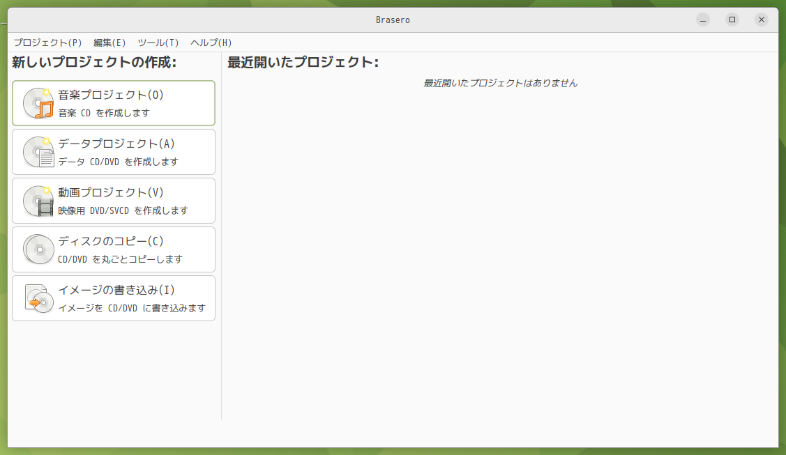Ubuntu MATE - 24.10 - 光ディスクライティング Brasero