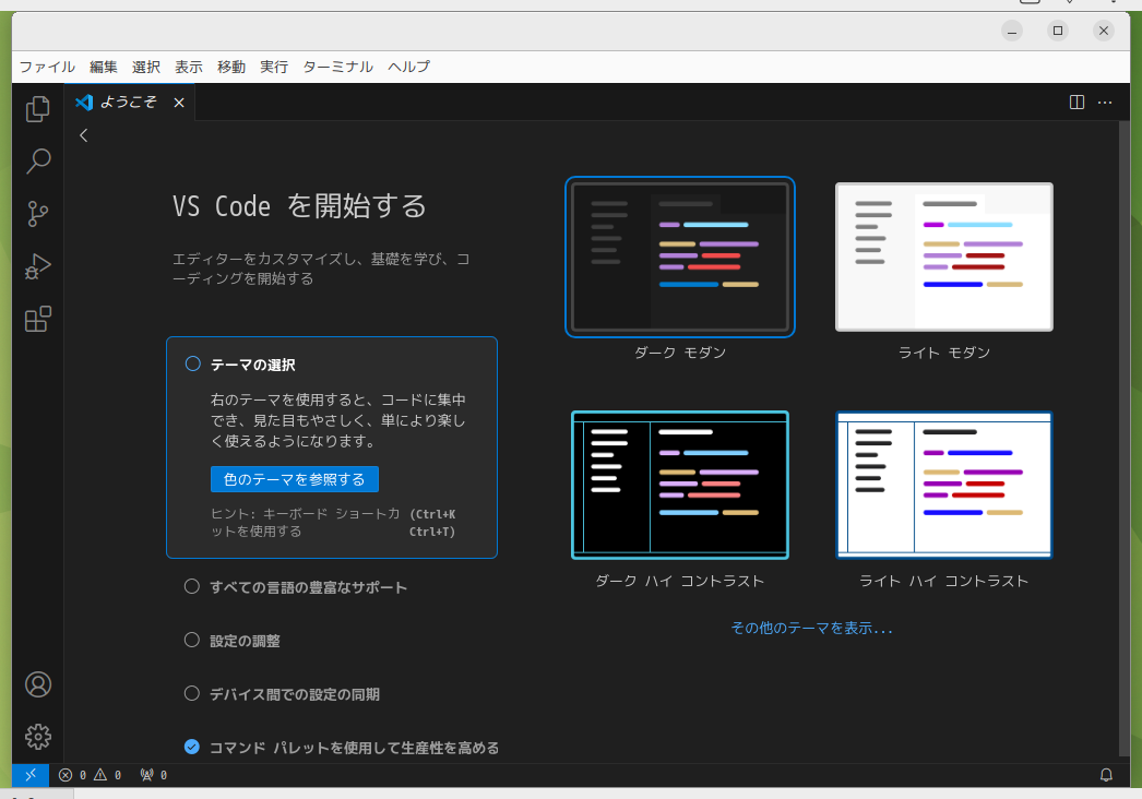 1. 概要 開発環境として、「Visual Studio Code」を使用します。 2. インストール アプリセンター「snap-store」で、「vscode」を検索して、インストールします。 3. 起動 「スタート」→「プログラム」→「Visual Studio Code」