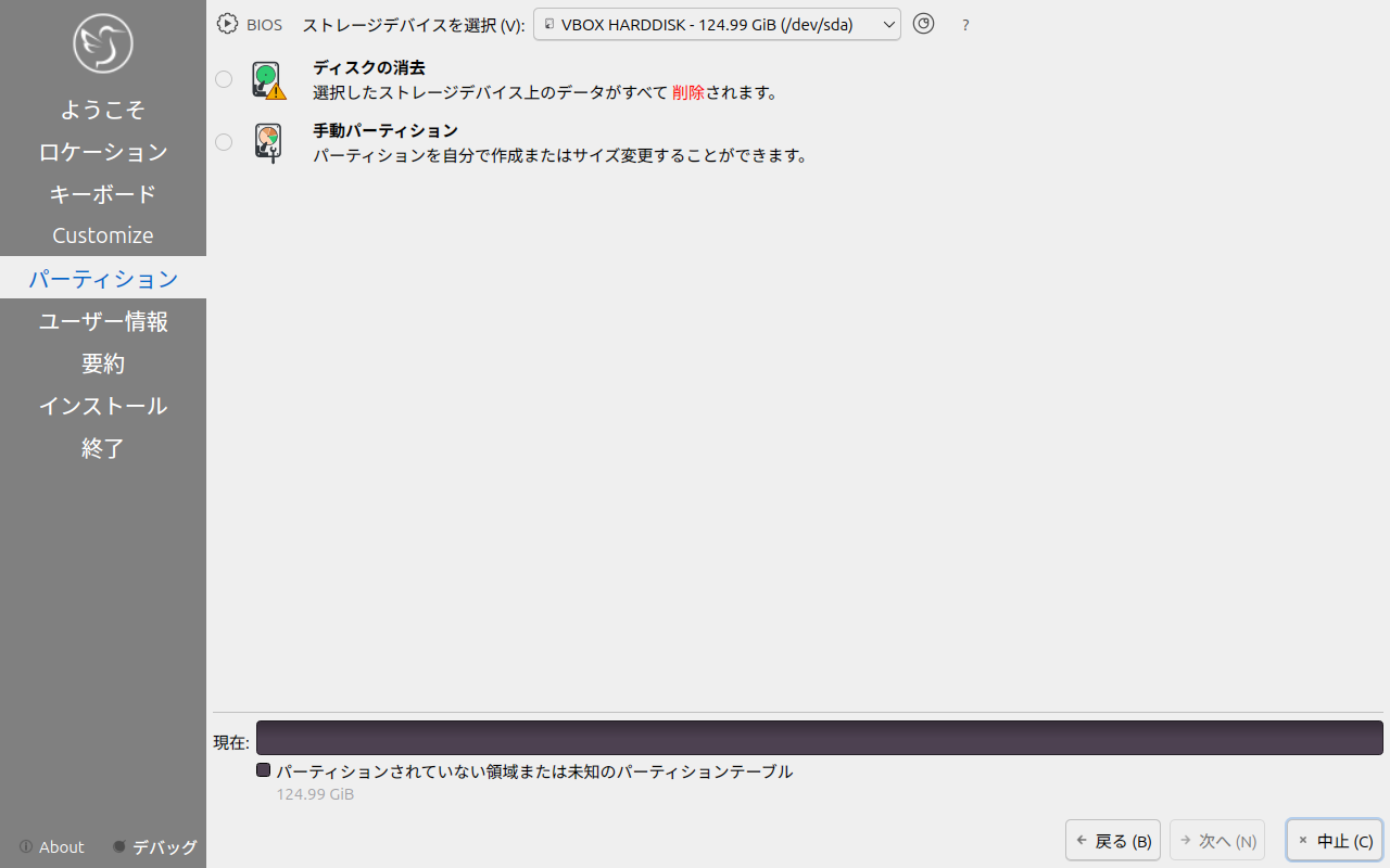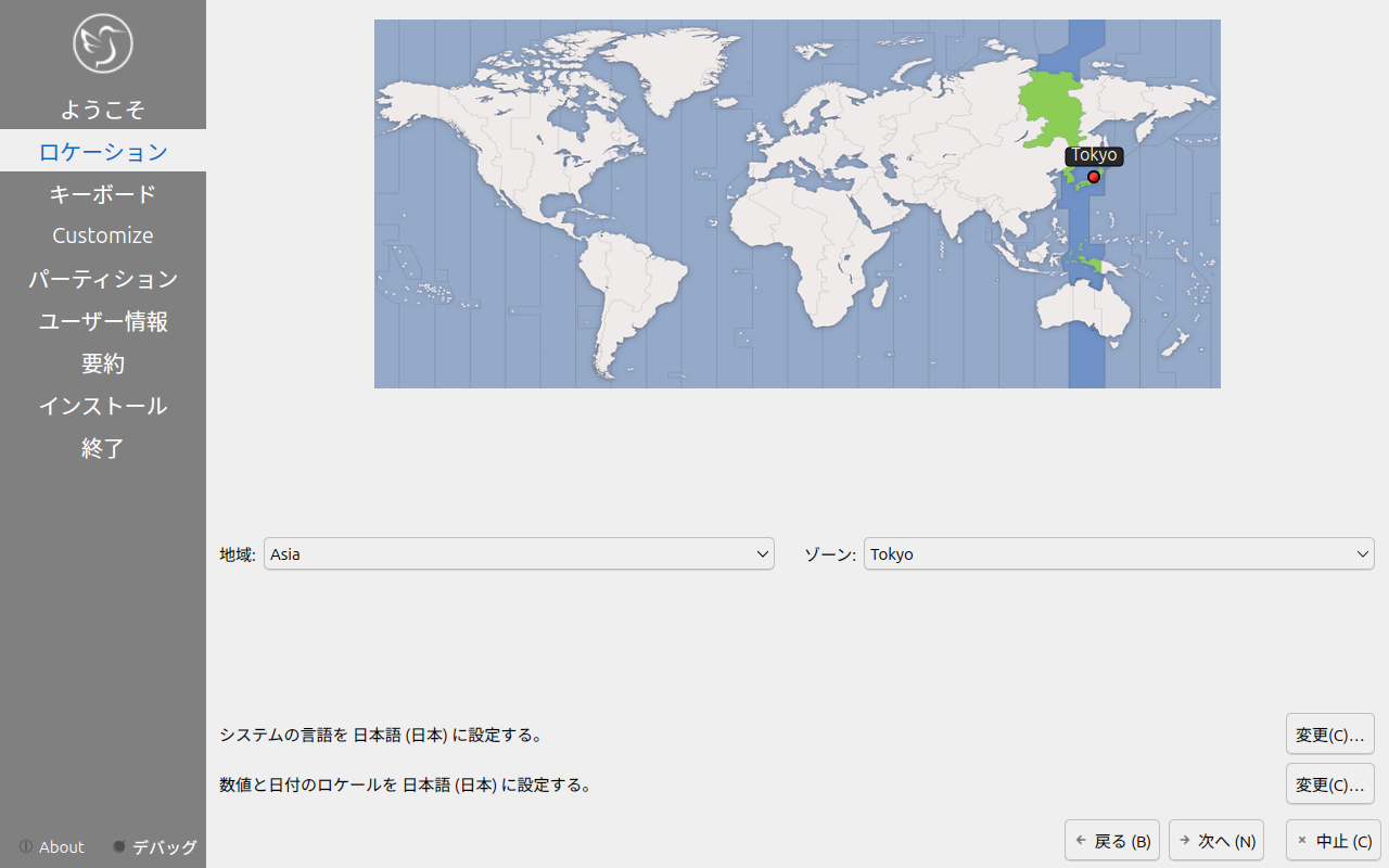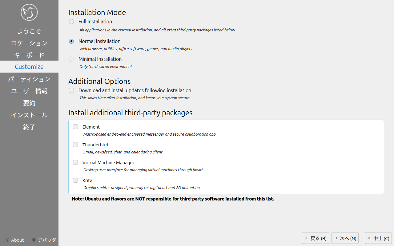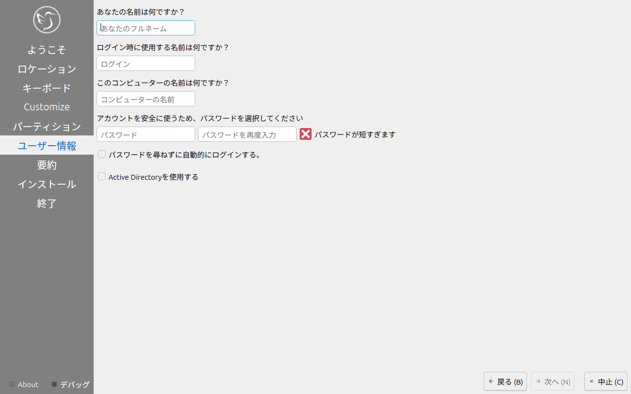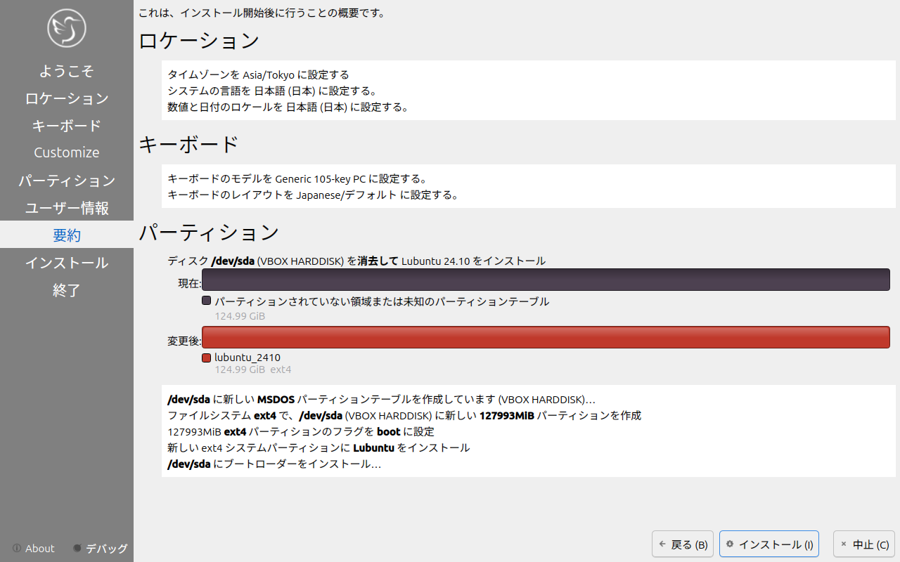他の「Ubuntu」系のディストリビューションは、いきなりインストーラが起動しますが、「Lubuntu」では、インストーラは、手動で起動します。