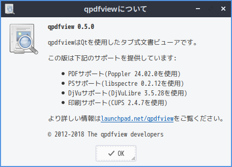 ドキュメントビューアとして、「qpdfview」を使用します。