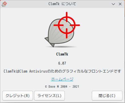 起動直後の状態です。 2024年10月16日の時点で、下記のバージョンでした。 操作方法については、「FreeBSD」のものですが「FreeBSD - デスクトップ環境構築 - 共通事項 - ClamTk」をご参照ください。 |
