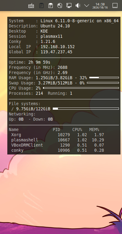 詳細は、「Conky - Wikipedia」をご参照ください。