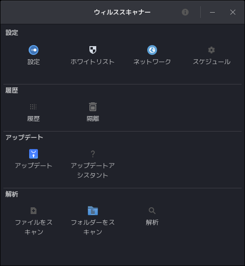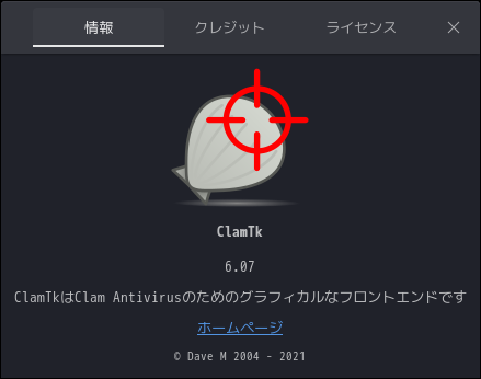 起動直後の状態です。 2024年10月16日の時点で、下記のバージョンでした。 操作方法については、「FreeBSD」のものですが「デスクトップ環境構築 - 共通事項 - ClamTk」をご参照ください。 |