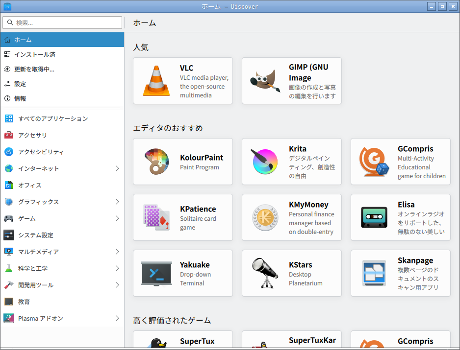 パッケージ管理のフロントエンドとして、「Discover」が、インストールされています。