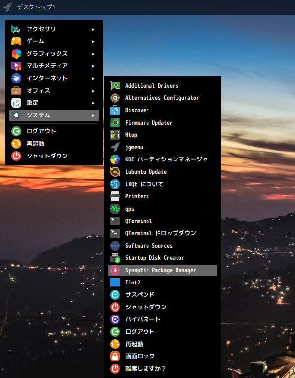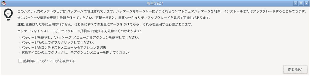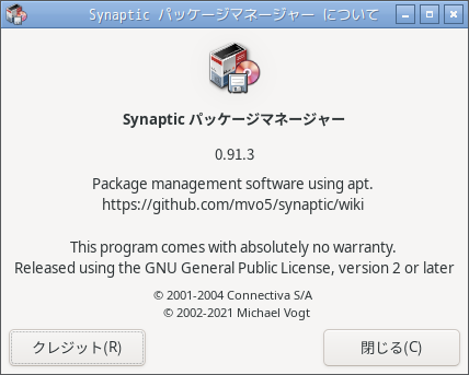 使い勝手のいい、「Synaptic」もインストールして使います。