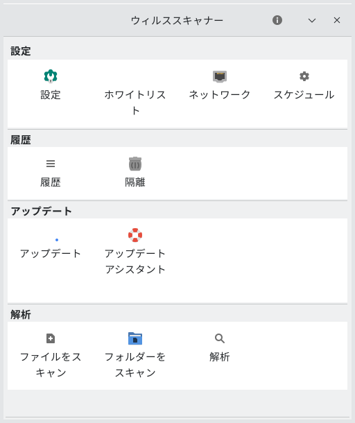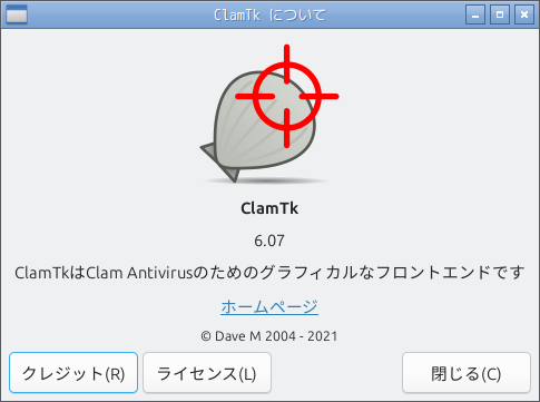 起動直後の状態です。 2024年10月17日の時点で、下記のバージョンでした。 操作方法については、「FreeBSD」のものですが「デスクトップ環境構築 - 共通事項 - ClamTk」をご参照ください。 |