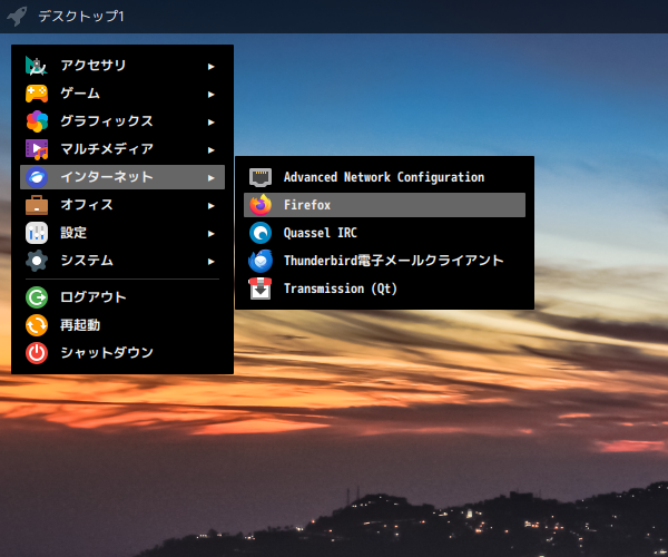1. 概要 ブラウザとして、デフォルトで「Firefox」がインストールされ、日本語化されています。 2. 起動 「スタート」→「インターネット」→「Firefox」