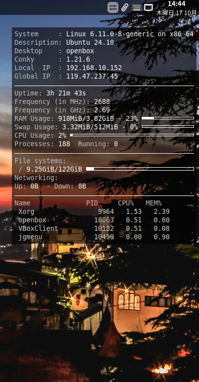 Ubuntu - 24.10 - Openbox - タスクマネージャ Conky