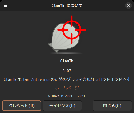 起動直後の状態です。 2024年10月18日の時点で、下記のバージョンでした。 操作方法については、「デスクトップ環境構築 - 共通事項 - ClamTk」をご参照ください。 |