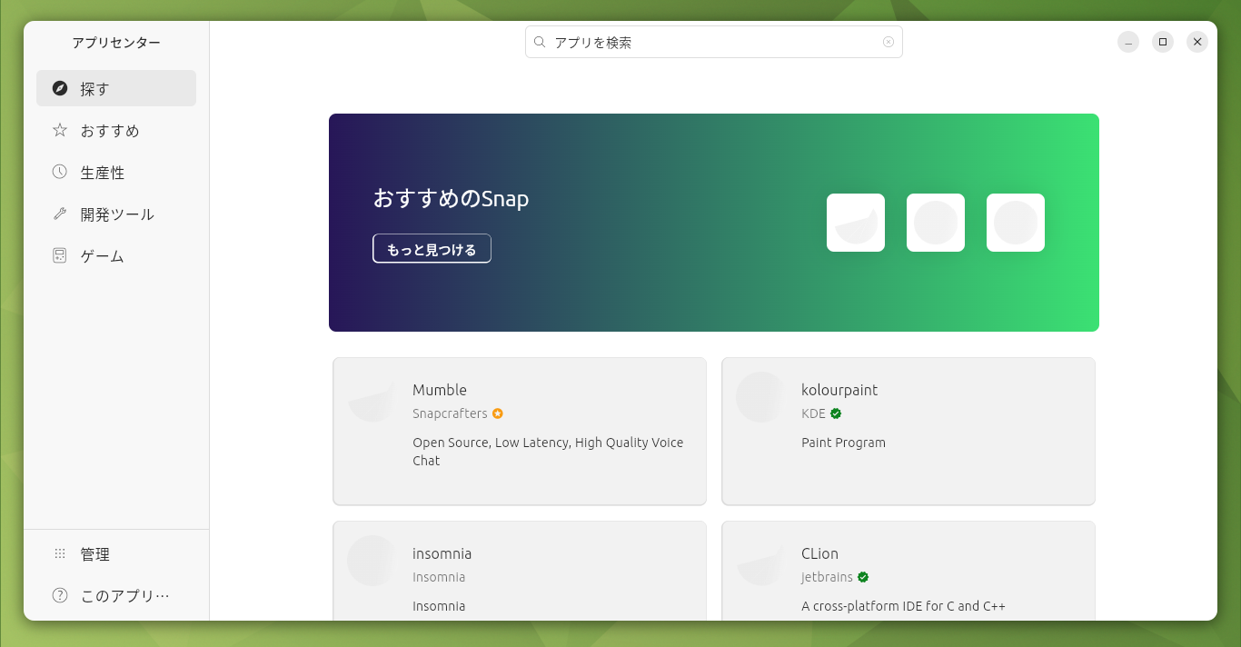 アプリケーションは、「snap-store」というようです。