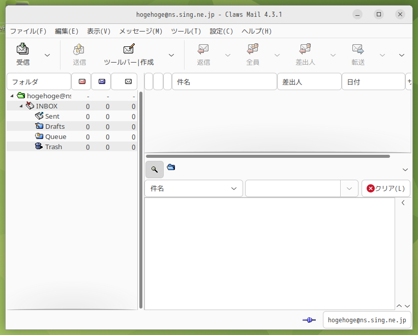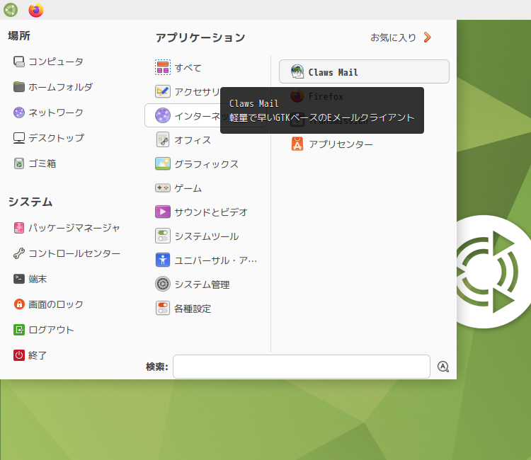 1. 概要 メールクライアントとして、インストールされているものはありません。 「Claws Mail」をインストールして使用します。 設定ウィザード等、操作に関しては、「メール クライアント ソフト - Claws Mail」をご参照ください。 2. インストール 「Synaptic」で、「claws-mail」を検索して、インストールします。 3. 起動 「スタート」→「オフィス」→「Claws Mail」