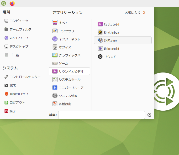 「スタート」→「サウンドとビデオ」→「SMPlayer」