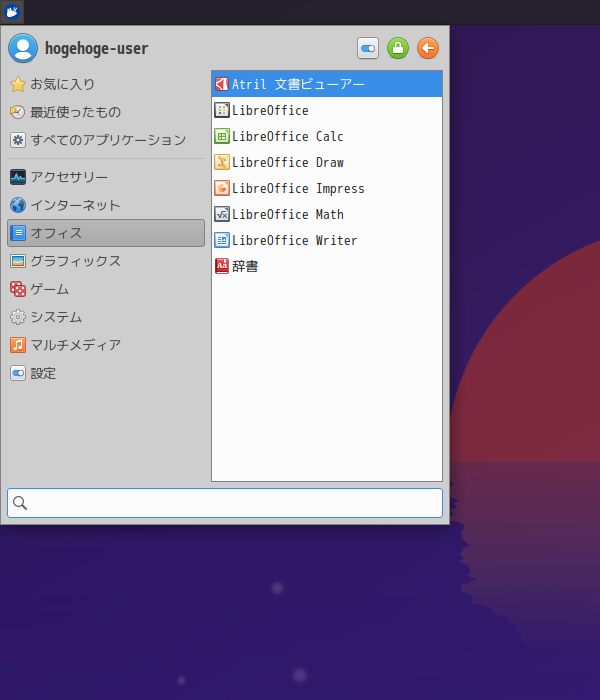 ドキュメントビューアとして、「Atril」を使用します。  「Atril」はデフォルトでインストールされています。