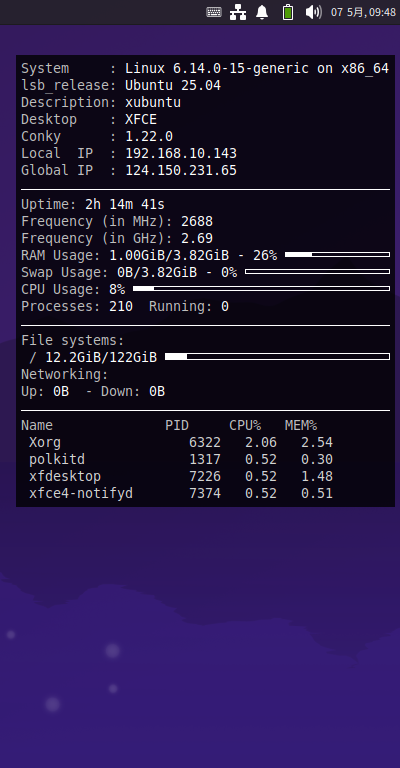 Xubuntu - 25.04 - タスクマネージャ Conky