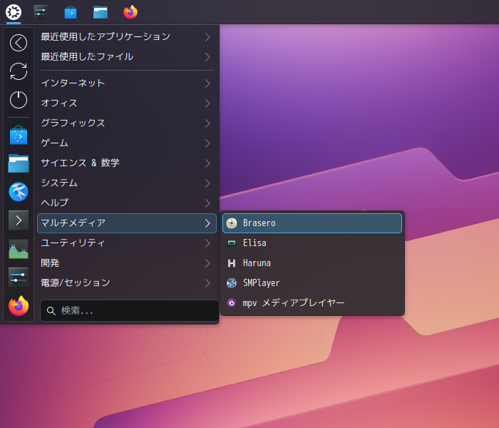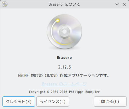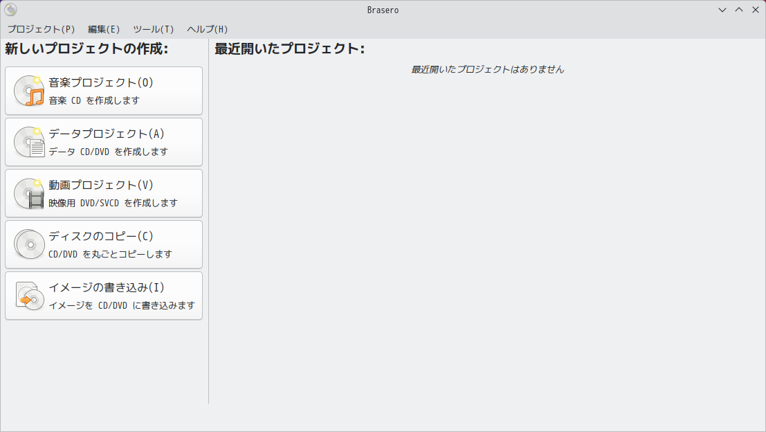 1. 概要 光ディスクのライティングソフトとして「Brasero」を使用します。 2. インストール 「Discover」で、「brasero」を検索して、インストールします。 3. 起動 「スタート」→「マルチメディア」→「Brasero」
