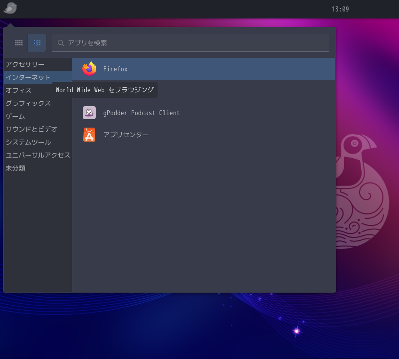 1. 概要 ブラウザとして、デフォルトで「Firefox」がインストールされており、日本語化されています。 2. 起動 「スタート」→「インターネット」→「Firefox」