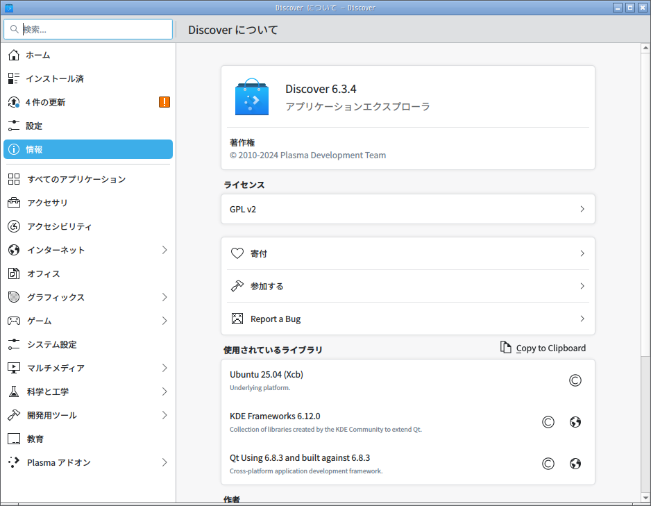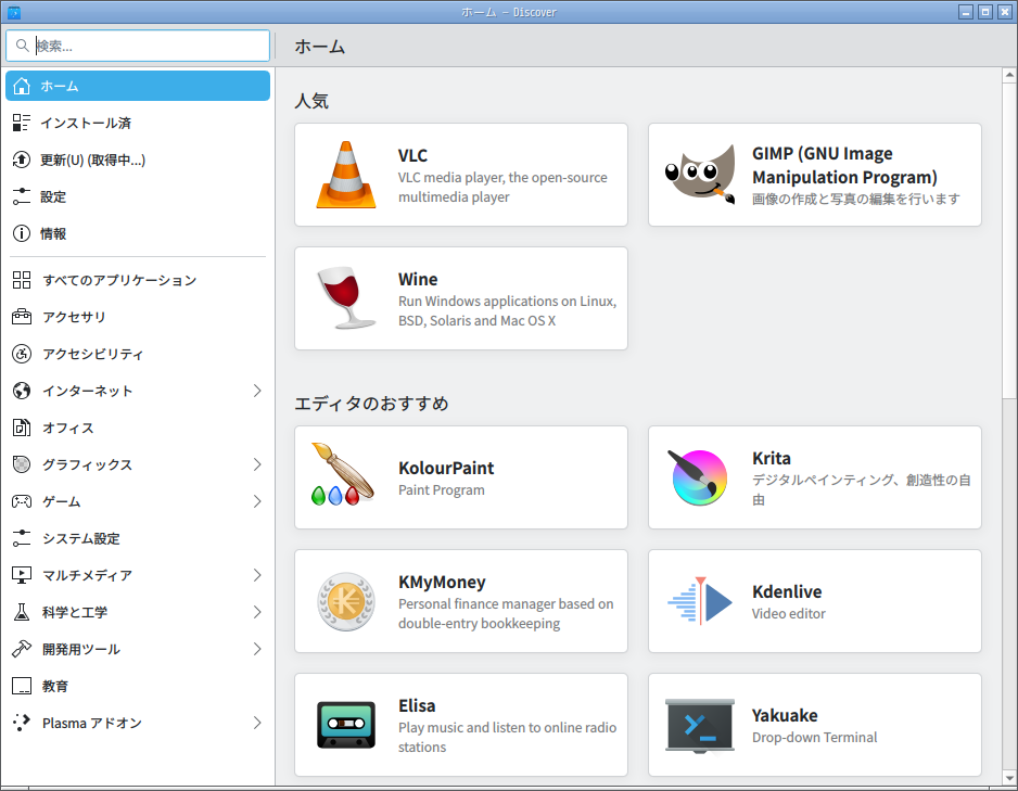 パッケージ管理のフロントエンドとして、「Discover」が、インストールされています。