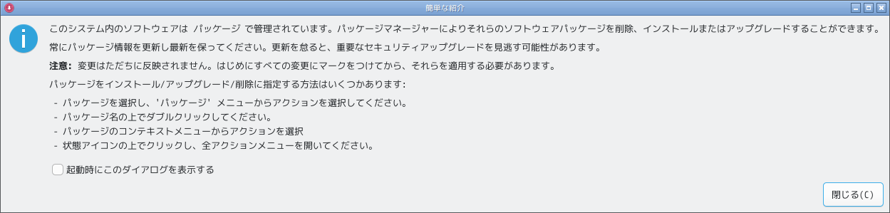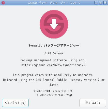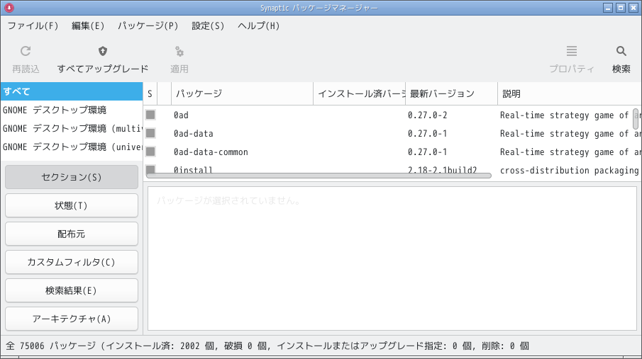 使い勝手のいい、「Synaptic」もインストールして使います。