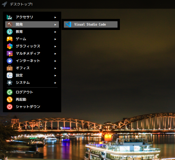 「スタート」→「開発」→「Visual Studio Code」