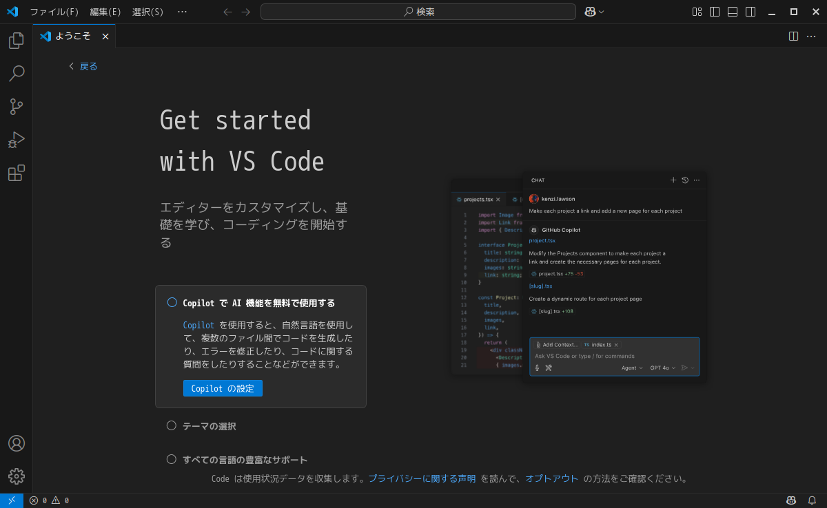 開発環境として、「Visual Studio Code」を使用します。
