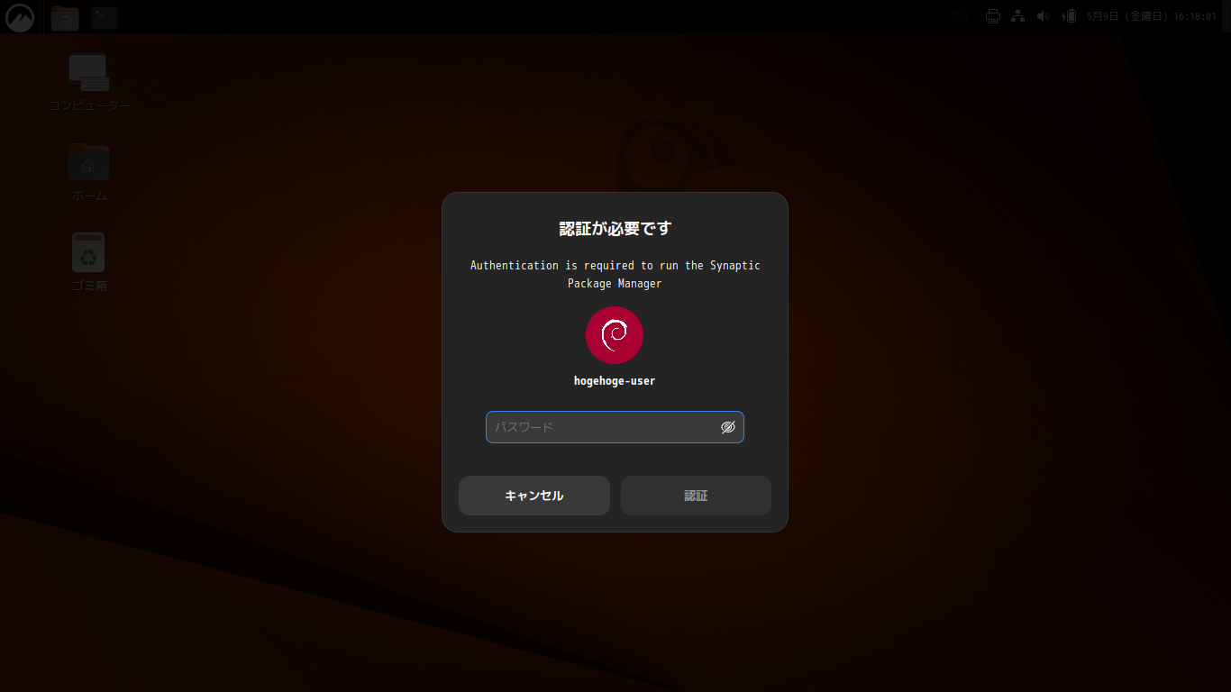 「スタート」→「システム管理」→「Synaptic パッケージマネージャ」