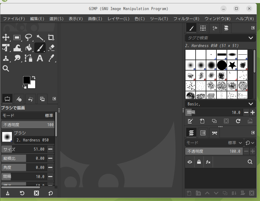「閉じる」 起動直後の状態です。 2025年10月14日の時点で、下記のバージョンでした。 「Arch Linux」系は、「GIMP2」から「GIMP3」へ移行したようですが、「Ubuntu」も移行したようです。 操作については、「画像編集ソフト GIMP2」に掲載しています。 上記は簡単なものですので、詳細なものがほしい方は、各所に初歩の手引きから応用編までありますので、そちらを参考にしてください。 |