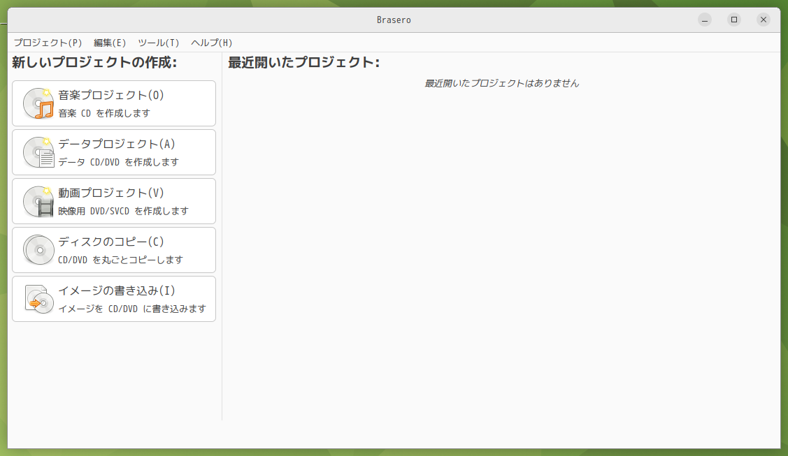 Ubuntu MATE - 25.10 - 光ディスクライティング Brasero