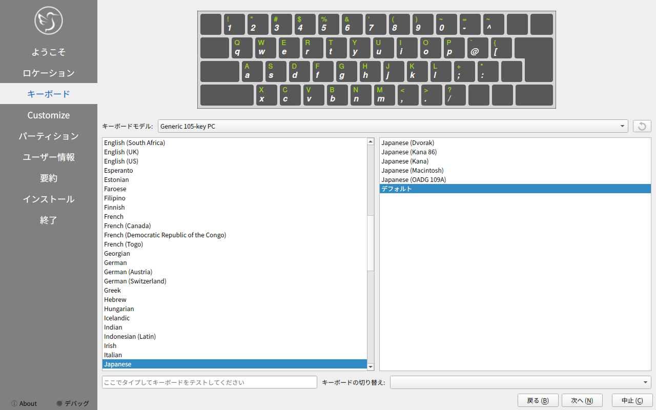 使用しているキーボードレイアウトを選択して