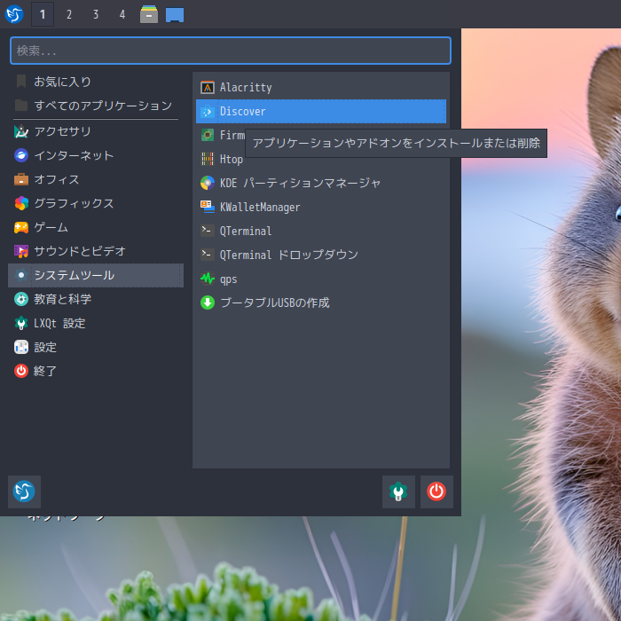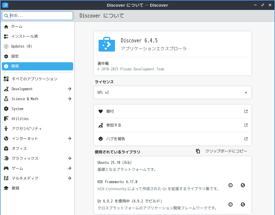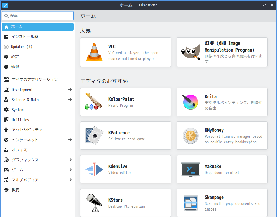 パッケージ管理の「GUI」フロントエンドとして、「Discover」がインストールされています。